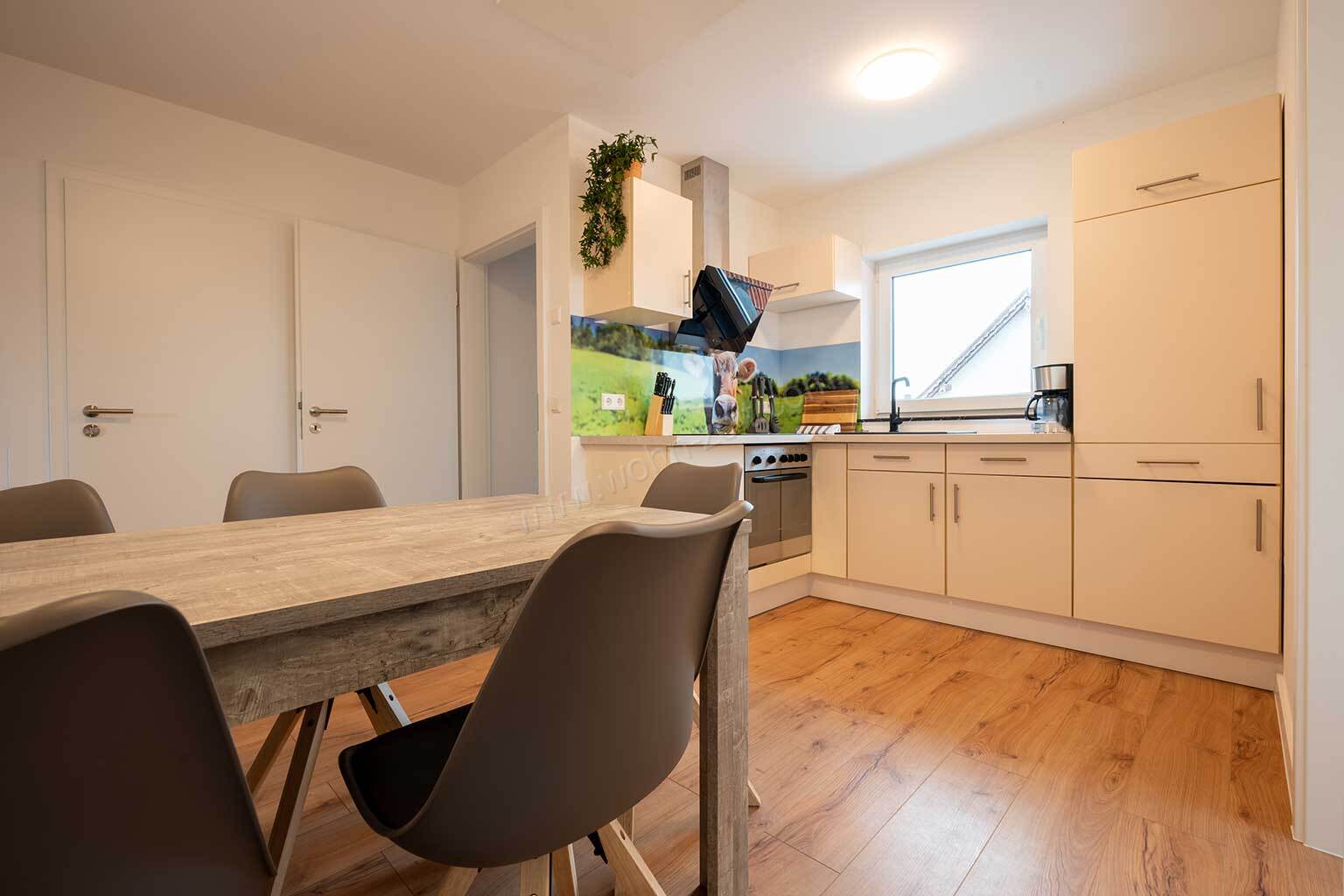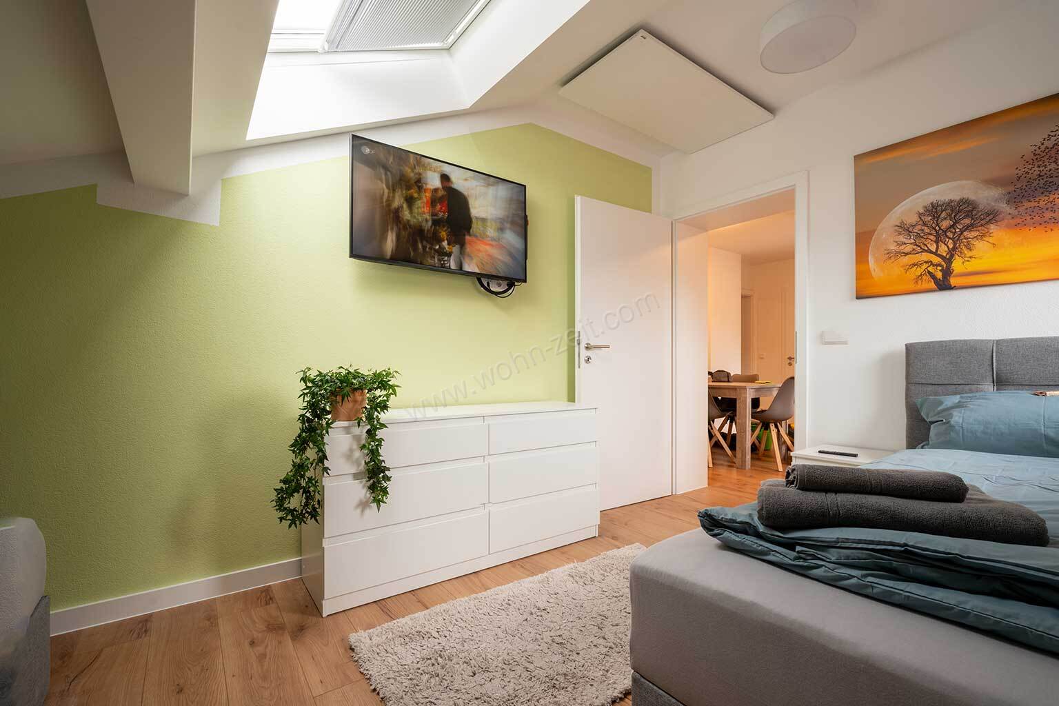 Geräumiges Appartement für bis zu 5 Personen mit Balkon und Badewanne.